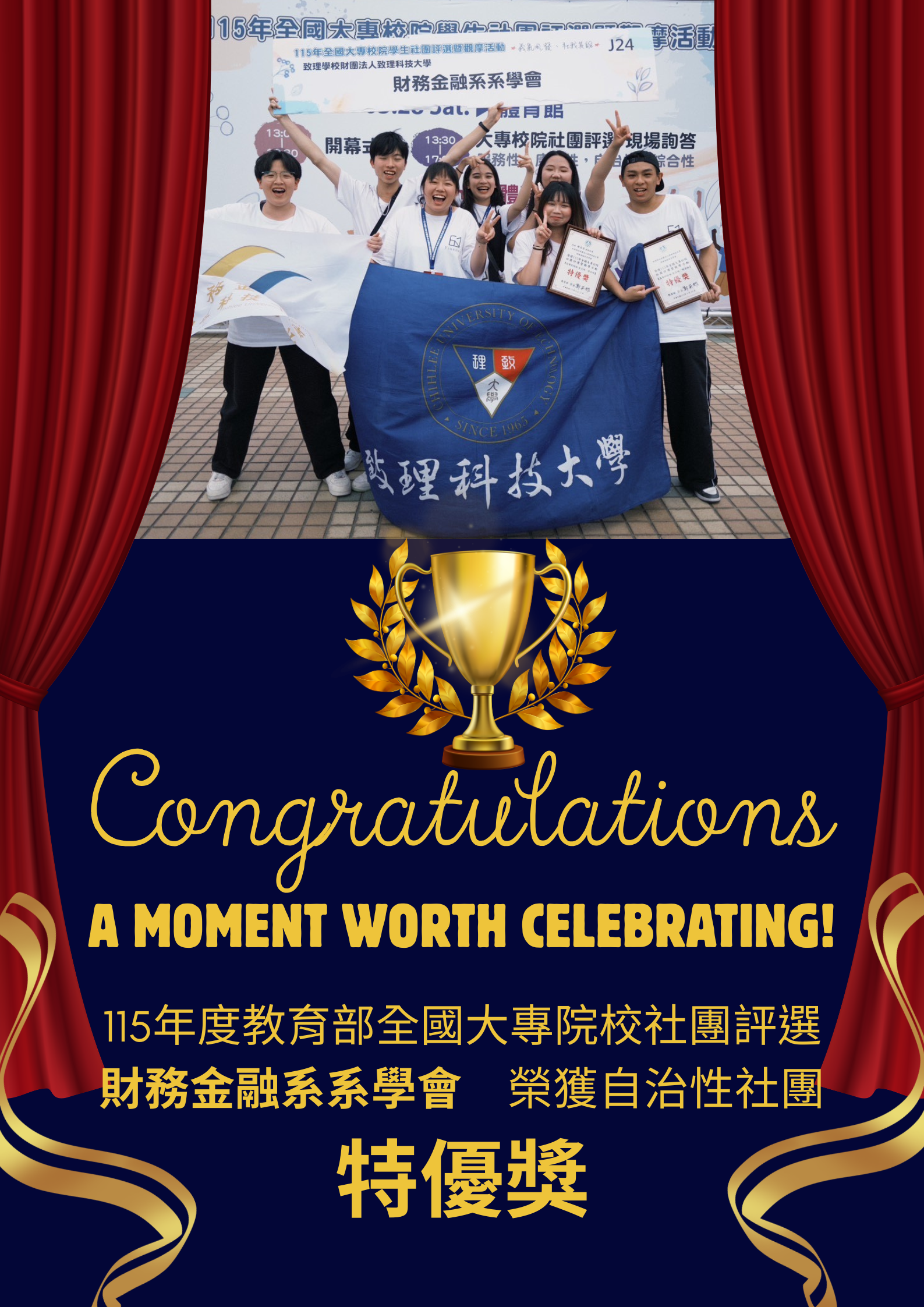 【財務金融系】賀!本系系學會榮獲115年度教育部全國大專院校社團評選自治性社團特優獎