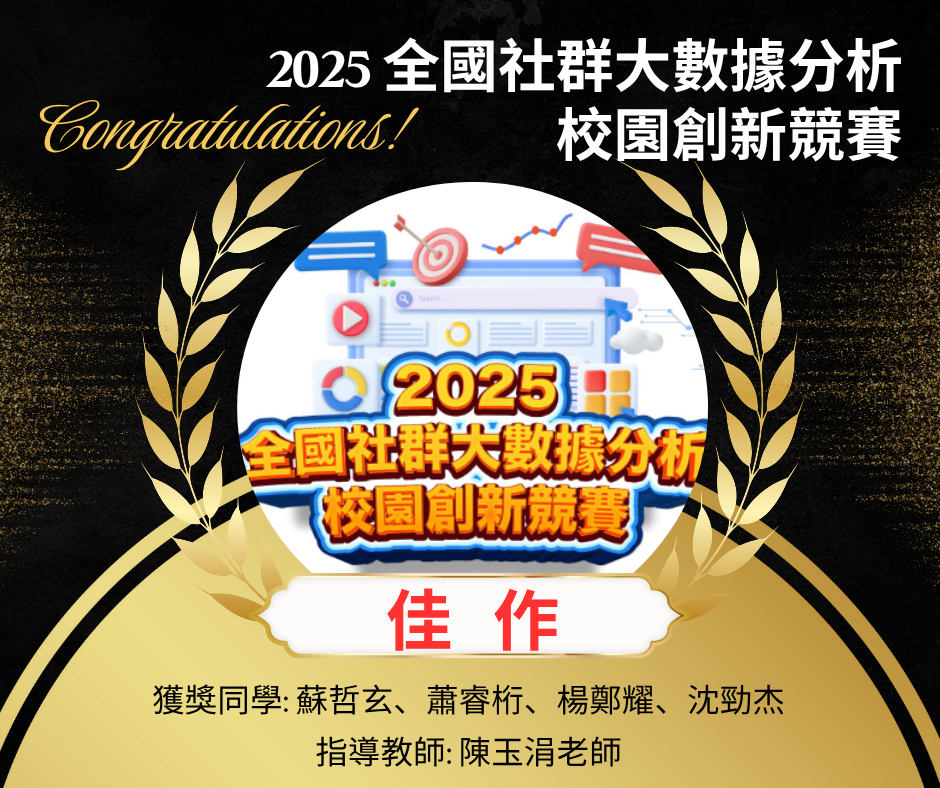 【財務金融系】賀!財金系同學參加2025全國社群大數據分析校園創新競賽獲得佳作
